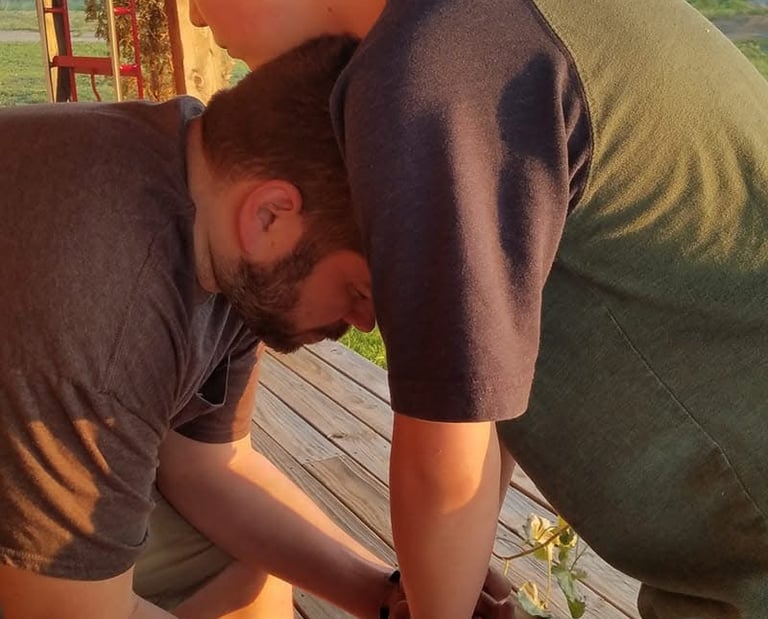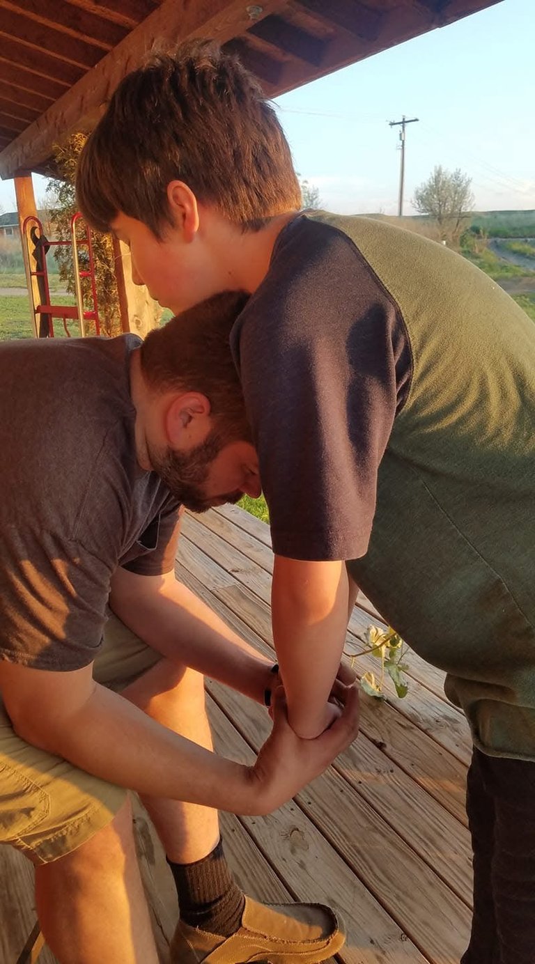 Our son & lover of the goats, horses & dogs. It's often hard to get current photos of your children when they live out of state. This is a favorite of Ben & David praying. When he visits, he tends to spend a lot of time with the animals.