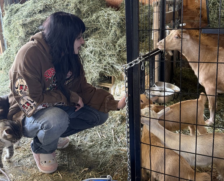 Autumn helps bottle feed babies as time permits in her busy schedule. She is an avid animal lover, & that love is definitely reciprocated by all the animals here on the farm. She is working towards a career in the medical industry. We are very proud!