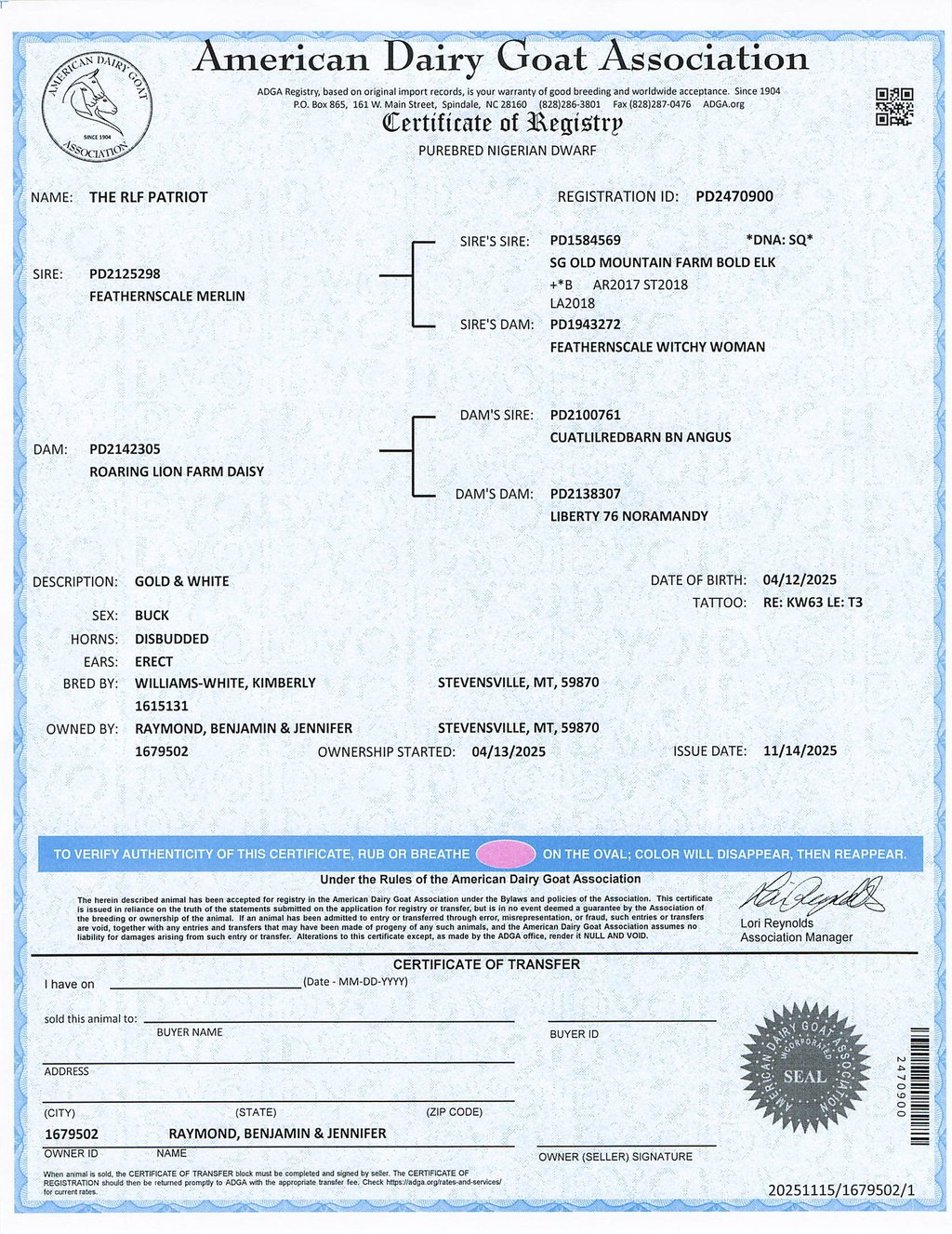 Sire: Old Mountain Farm StagLee