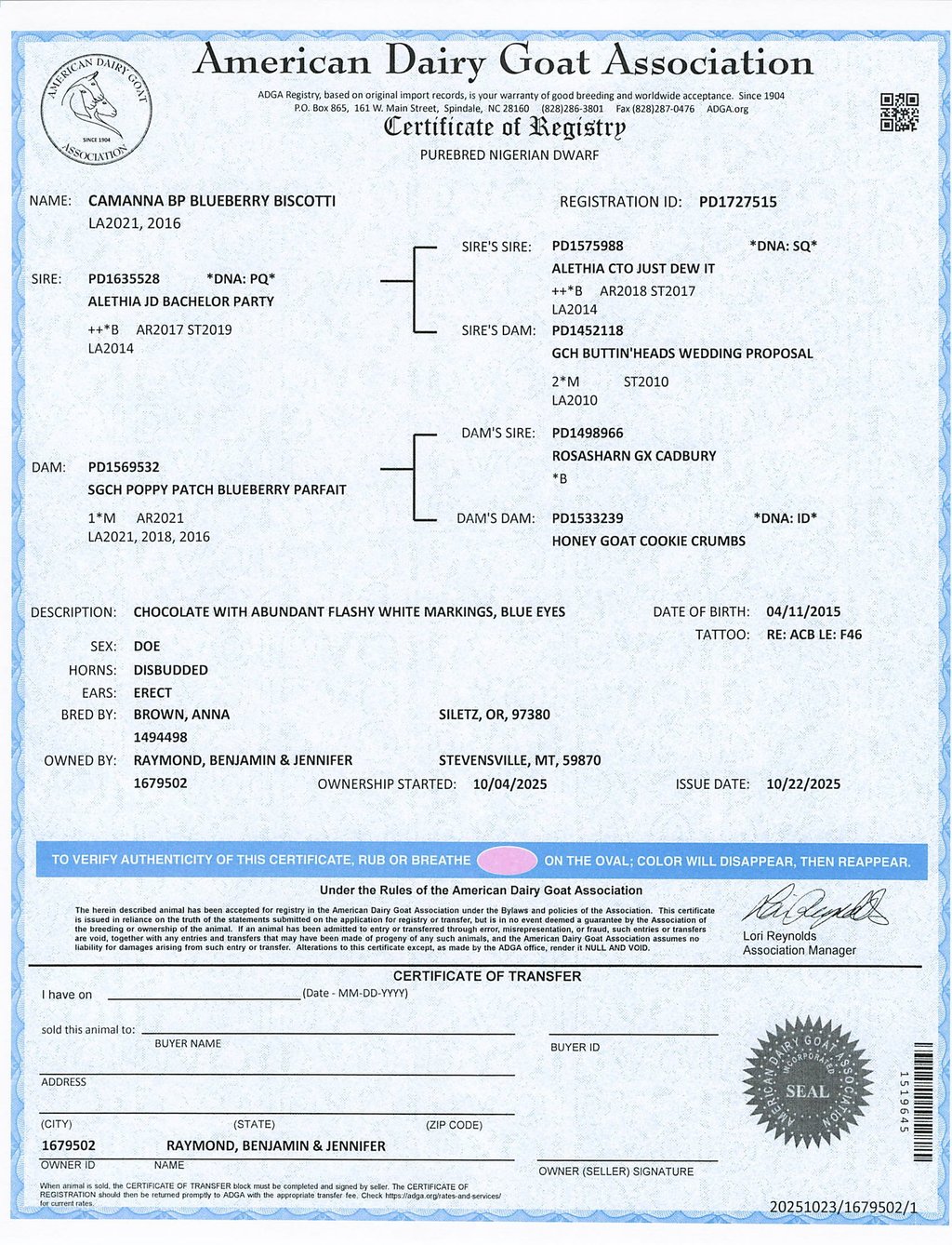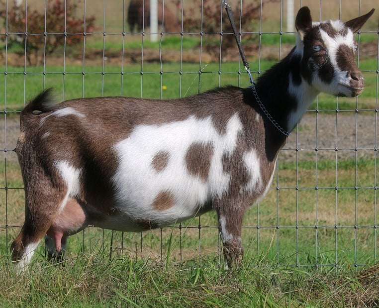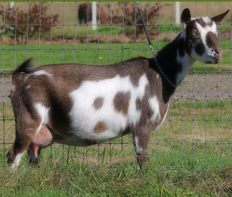 4/11/15 ADGA Chocolate w/Flashy White; Blue Eyes Doe (triplet)