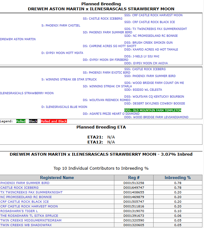 Planned Pedigree: Bred to Drewem Aston Martin for a May 2026 kidding.