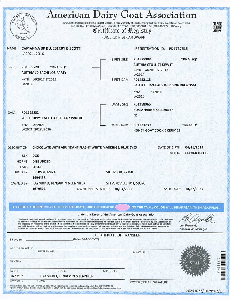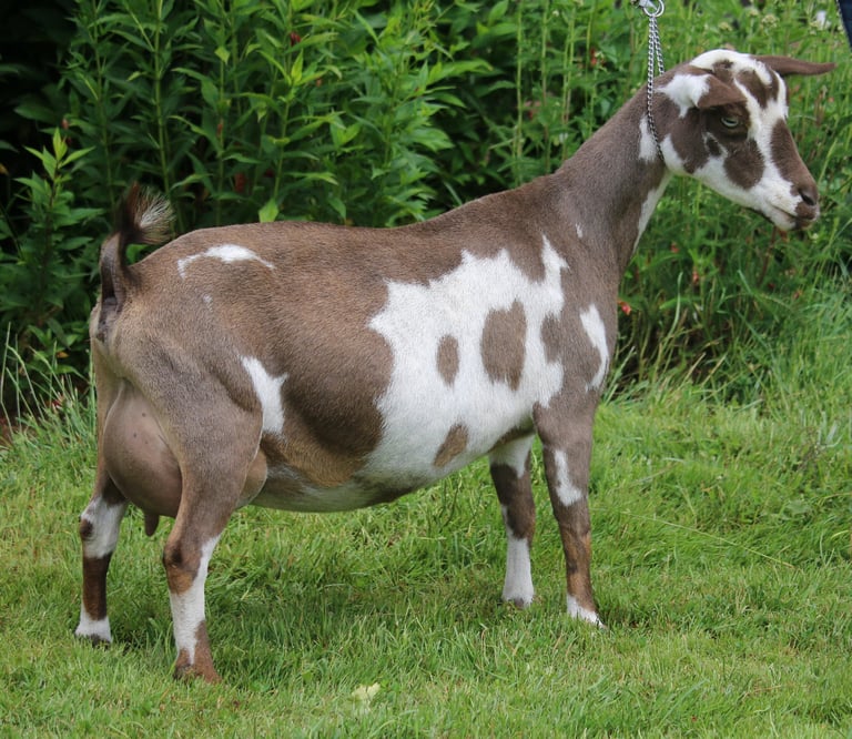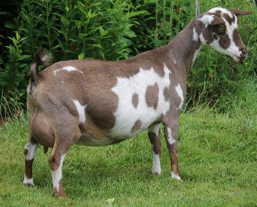4/11/15 ADGA Chocolate w/Flashy White; Blue Eyes Doe (triplet)